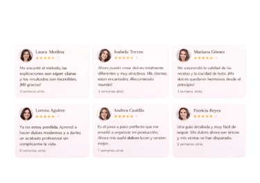 Recuerda que tu acceso es de por vida, y constantemente podrás volver a consultar el método y los bonos para seguir aprendiendo, practicando y perfeccionando tus creaciones dulces a tu ritmo.