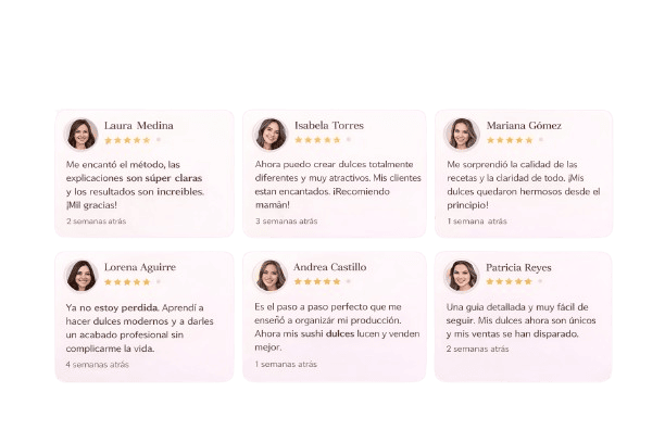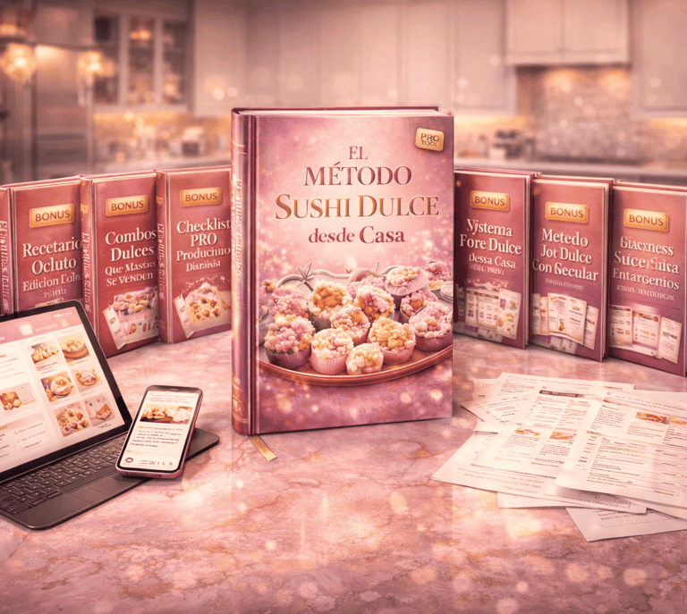 EL MÉTODO SUSHI DULCE es la guía paso a paso que te acompaña desde lo básico hasta creaciones más creativas, ayudándote a aprender con claridad y confianza en cada etapa.